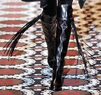 Swooch swooch down the street in these leather boots with a seriously long fringe on the side.